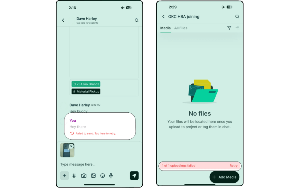 • Offline caching for file uploads and messages